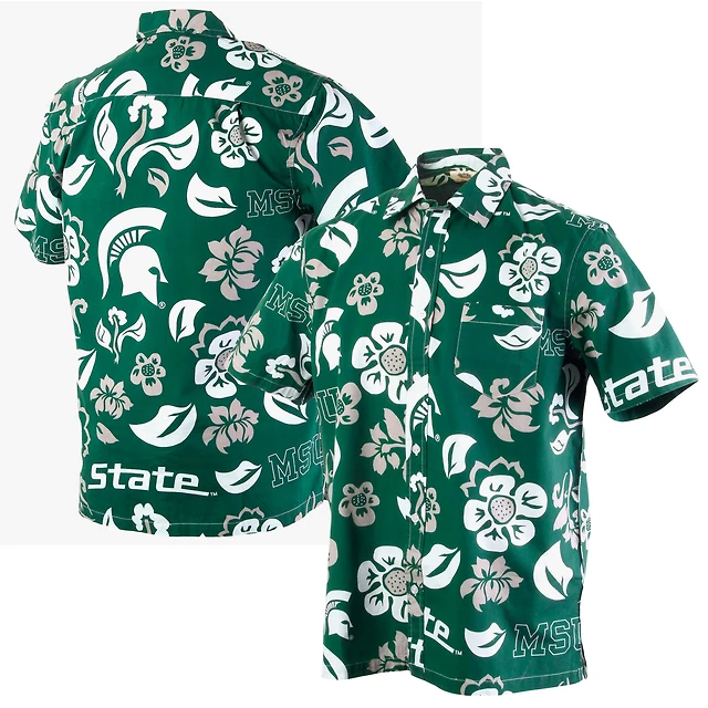 Men's Wes & Willy Green Michigan State Spartans Floral Button-Up Shirt