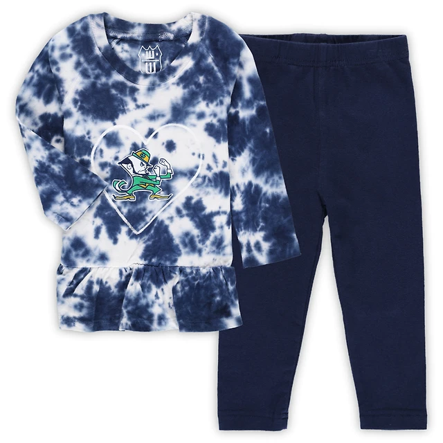 Girls Infant Wes & Willy Navy Notre Dame Fighting Irish Tie-Dye Ruffle Raglan Long Sleeve T-Shirt & Leggings Set