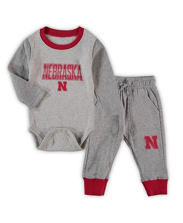 Infant Boys and Girls Wes & Willy Heathered Gray, Crimson Oklahoma Sooners Jie Long Sleeve Bodysuit Pants Set