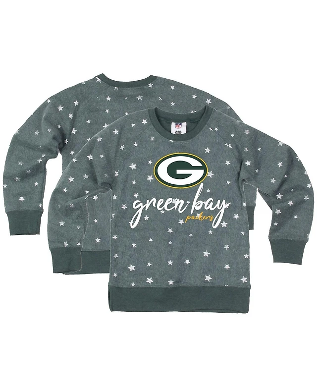 Wes & Willy Big Girls Green Green Bay Packers Shimmer Star Reverse Fleece Pullover Sweatshirt