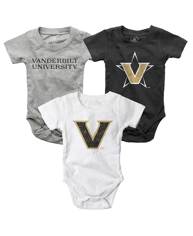 Wes & Willy Baby Boys and Girls 3-Pack Black/White/Heather Gray Vanderbilt Commodores Bodysuit Set