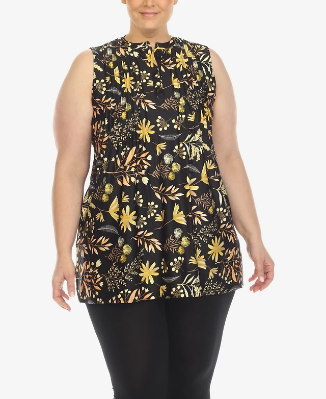 White Mark Plus Pleated Front Sleeveless Tunic Top