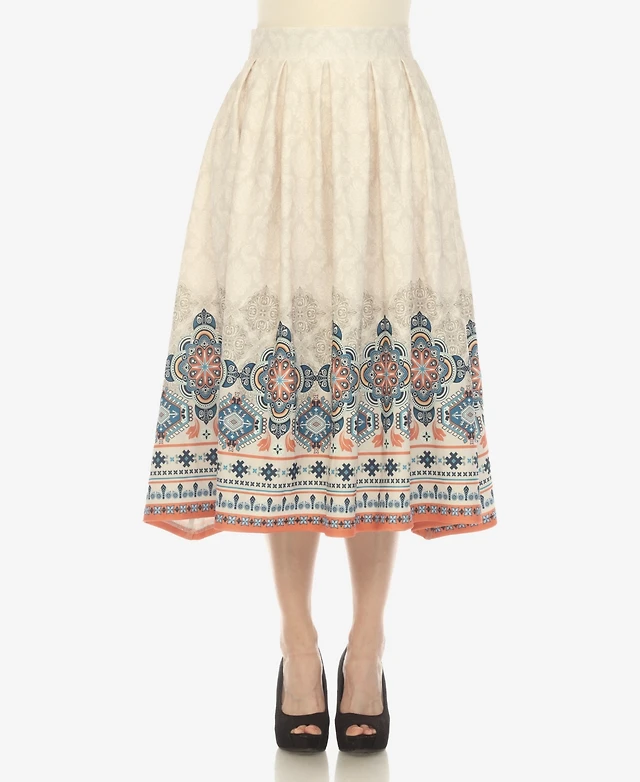 White Mark Women's Leaf Print Vintage Flared Midi Skirt