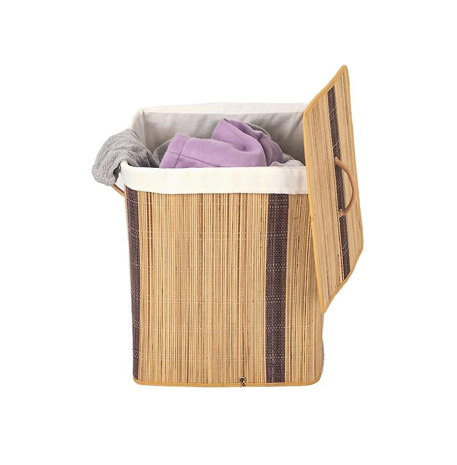 Wickerwise Square Coconut Sticks Collapsible Waterproof Laundry Hamper with Lid and Handles for Organizer, Clothes, Toy Durable Folder Washing Bin for