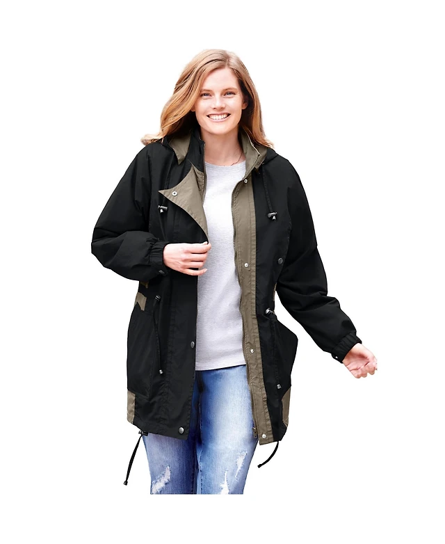Woman Within Women's Plus Colorblocked Taslon Anorak
