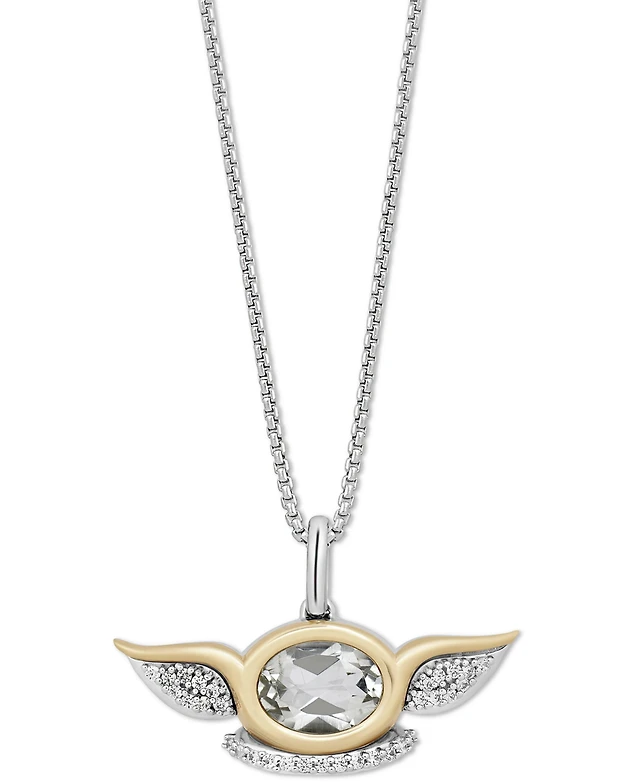 Star Wars Wonder Fine Jewelry Green Quartz (1-1/4 ct. t.w.) & Diamond (1/10 ct. t.w.) Grogu Pendant Necklace in Sterling Silver & Gold-Plate, 15-3/4"