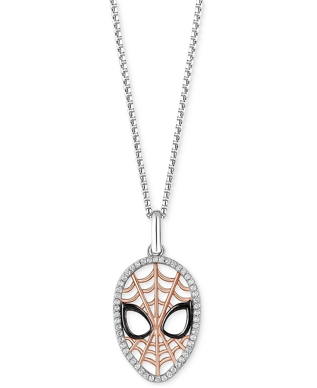 Marvel Wonder Fine Jewelry Diamond Spiderman Mask 18" Pendant Necklace (1/6 ct. t.w.) in Sterling Silver & Rose Gold-Plate