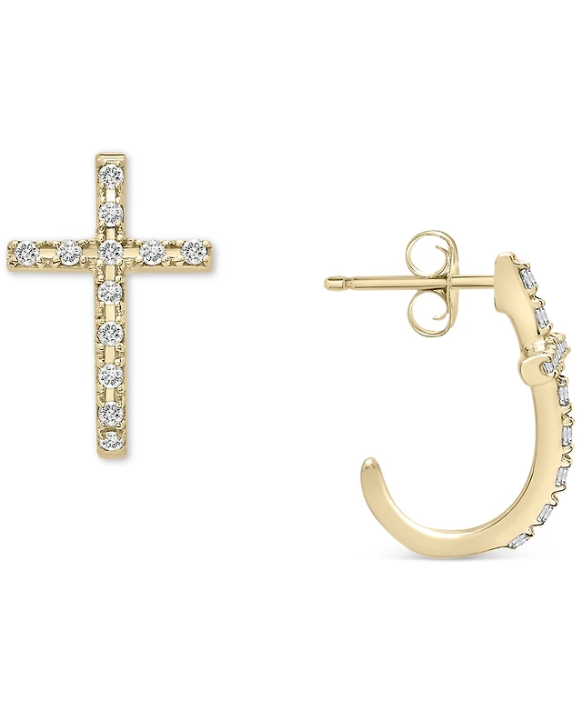 Wrapped Diamond Cross Earrings (1/8 ct. t.w.) 14k White or Yellow Gold, Created for Macy's