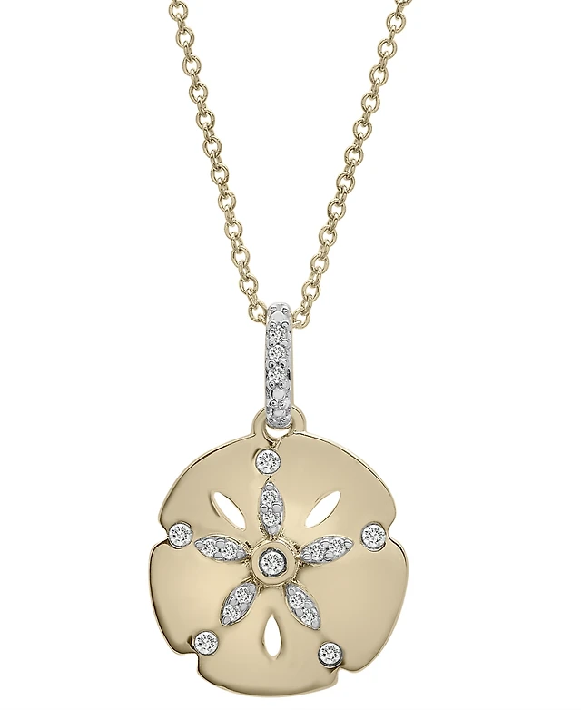 Wrapped Diamond Starfish Sand Dollar Pendant Necklace (1/10 ct. t.w.) in 14k Gold-Plated Sterling Silver, 16" + 2" extender, Created for Macy's