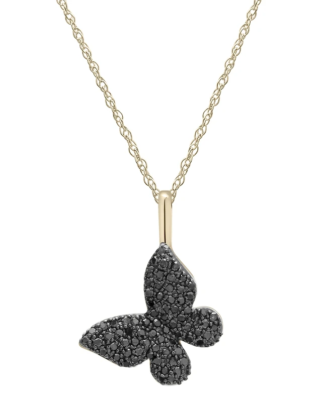 Wrapped Diamond Butterfly Pendant Necklace (1/6 ct. t.w.) 14k Gold (Also Available Black Diamond)