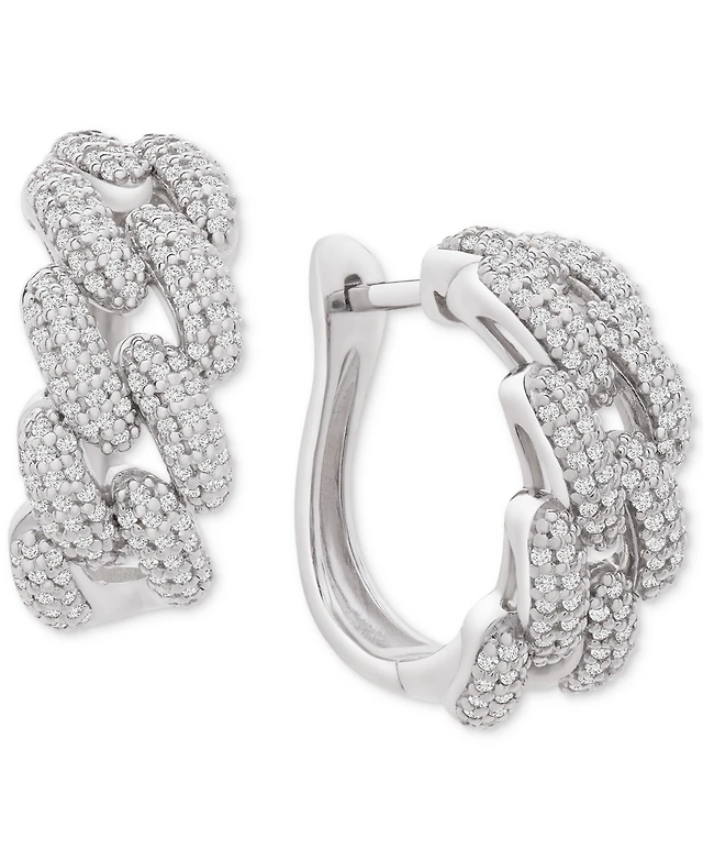 Wrapped in Love Diamond Chain Link Detail Small Hoop Earrings (1 ct. t.w.) in Sterling Silver, .79", Created for Macy's