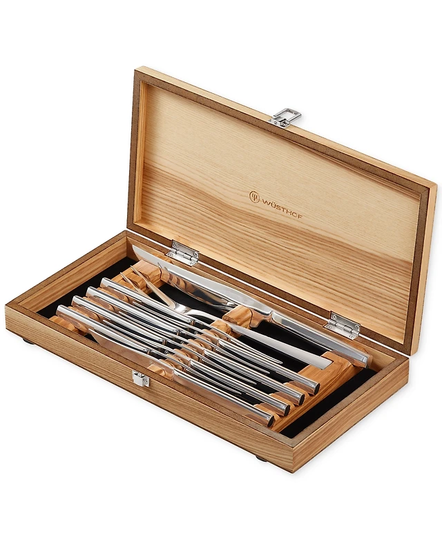 Wusthof 10-Piece Stainless Steak Knife & Carving Set in Olivewood Chest