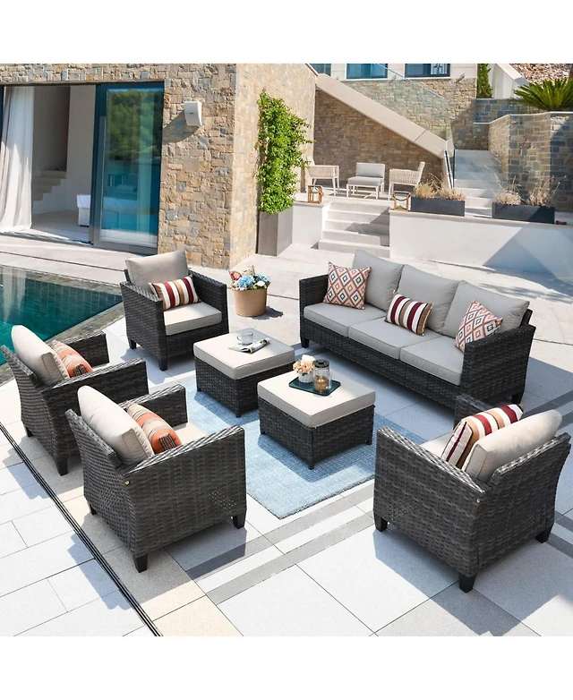 Xizzi 9 Piece Outdoor Patio Furniture with 3 Seat Sofa,All Weather Wicker Coversation Set Swivel Rocking Chair,Balcony Sofa Solar Nestin
