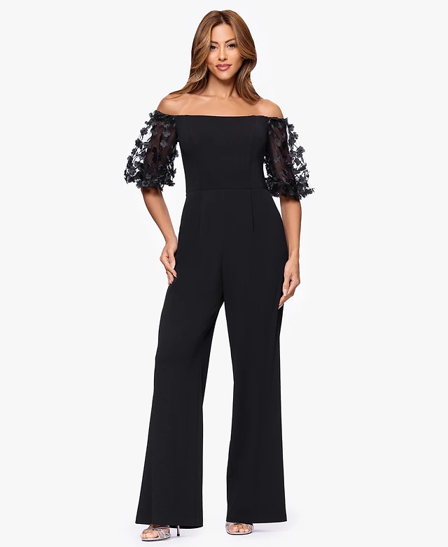 Xscape Women's Off-The-Shoulder Ruched Side Floral Jumpsuit