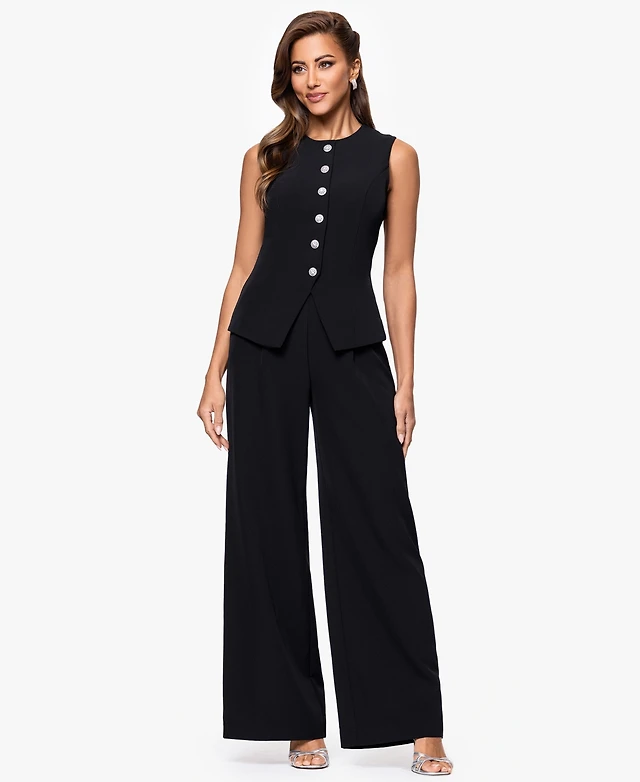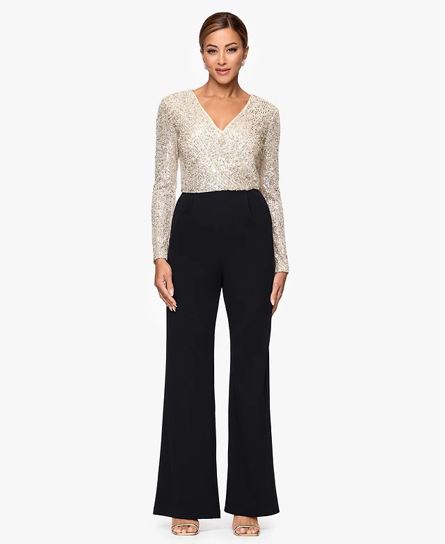 Xscape Women's Sequined-Bodice Straight-Leg Jumpsuit