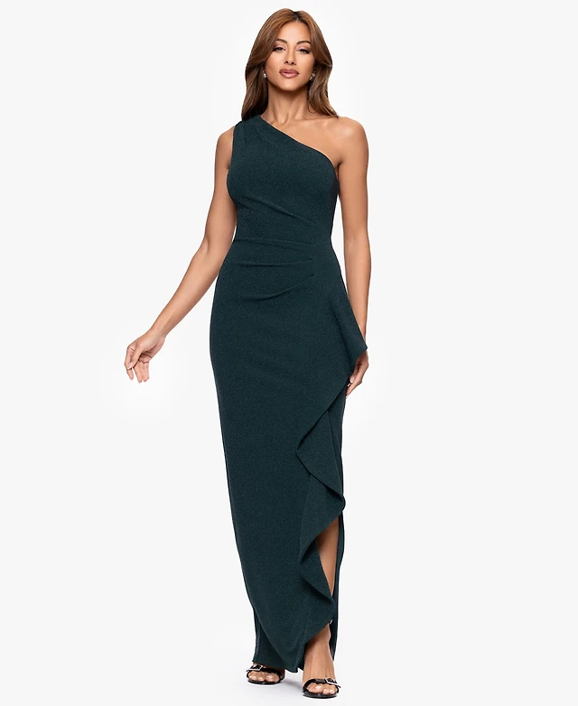 Xscape Women's Long One-Shoulder Ruffle Dress