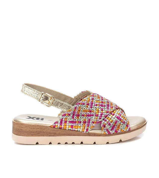 Women's Criss Cross Straps Low Wedge Sandals By Xti