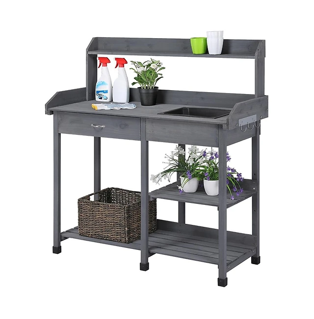 Yaheetech 33 H Rolling Kitchen Storage Serving Cart Dark Gray