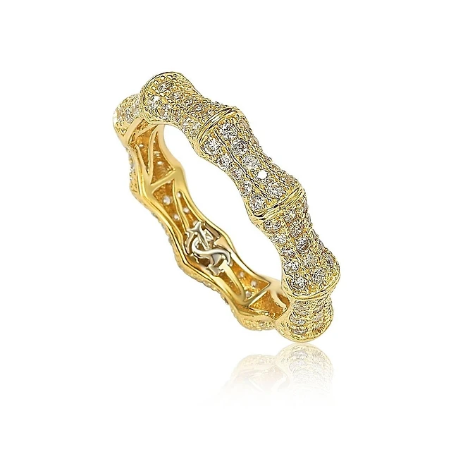 Suzy Levian Sterling Silver Cubic Zirconia Bamboo Eternity Band Ring