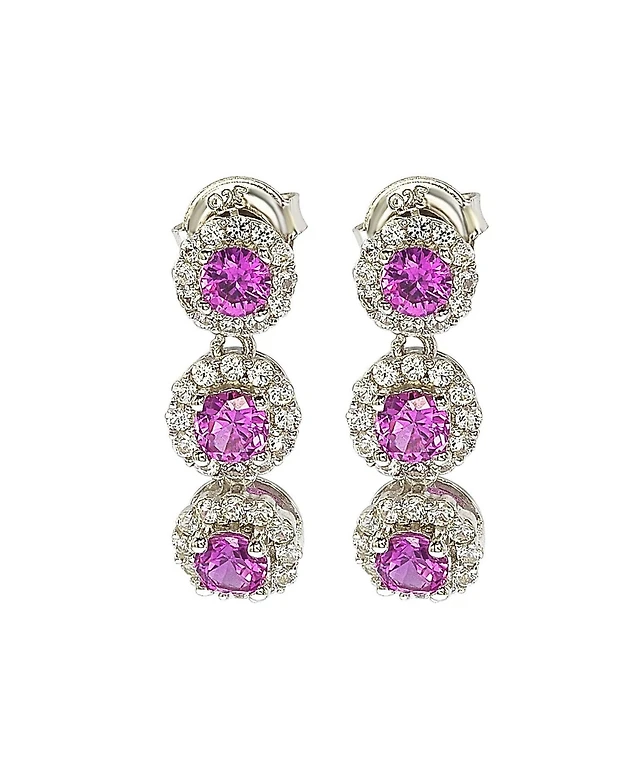 Suzy Levian New York Suzy Levian Sterling Silver Sapphire & Created White Sapphire Halo Triple Drop Dangle Earrings