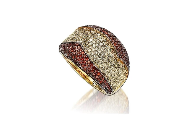Suzy Levian New York Sterling Silver Cubic Zirconia Orange Cocktail Ring