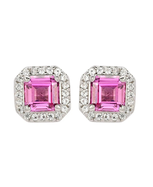 Suzy Levian New York Suzy Levian Sterling Silver Pink Ascher Cut Cubic Zirconia & White Cubic Zirconia Halo Pendant