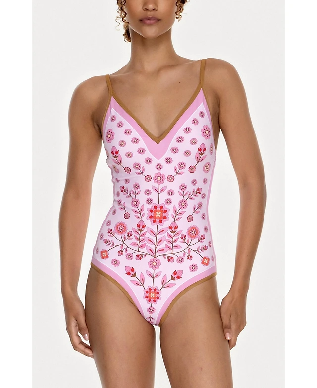 Jessie Zhao New York Women's Pink Garden Reversible V-Neck One-Piece Swimsuit