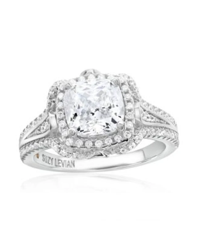Suzy Levian Sterling Silver Cubic Zirconia Cushion Cut Center Stone Lotus Ring