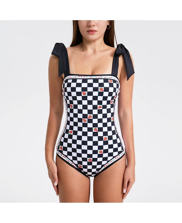 Jessie Zhao New York Women's Checkerboard Imagination Reversible One-Piece Swimsuit
