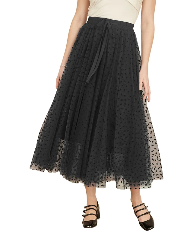 Yumi Women's Mesh Heart Print Tulle Skirt