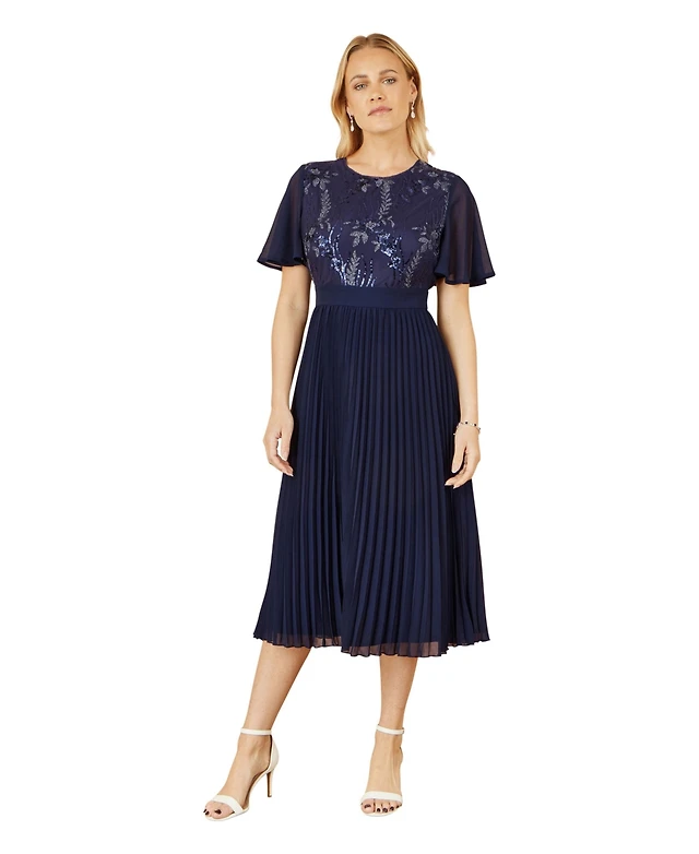 Yumi Women's Sequin Embellished Pleated Midi Dress