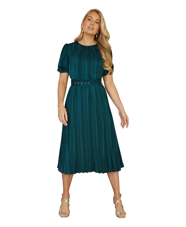 Yumi Women's Satin Pleated Stripe Midi Dress