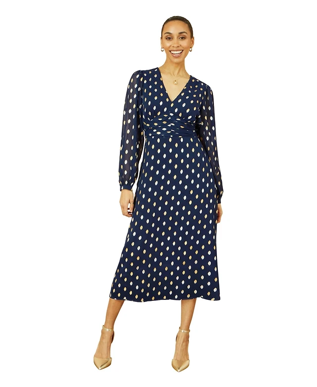 Yumi Women's Floral Satin Long Sleeve Midi Dress