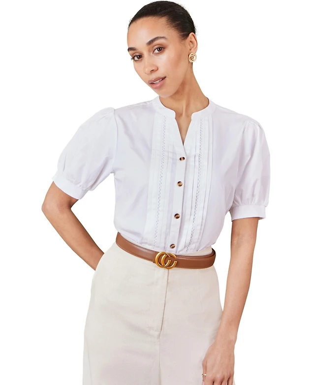 Yumi Women's Cotton Pleated Short Sleeve Shirt