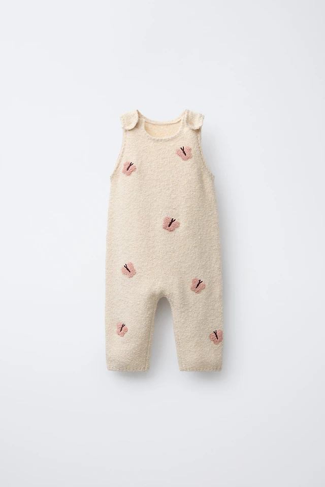 EMBROIDERED BUTTERFLY KNIT OVERALLS