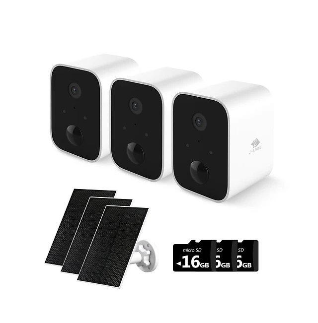 Z-edge SW03-Black 3 Packs 1080P Full Hd Wireless Smart Cameras with Solar Panels and 16GB Tf Card, Supports Night Vision, Wi-Fi and Smartphone App