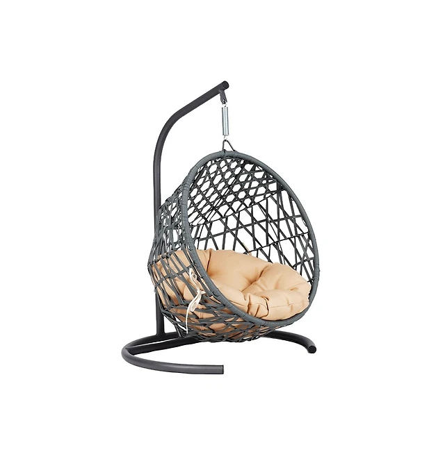 Zeus & Ruta Gray Rattan Cat Egg Chair with Stand and Cushion
