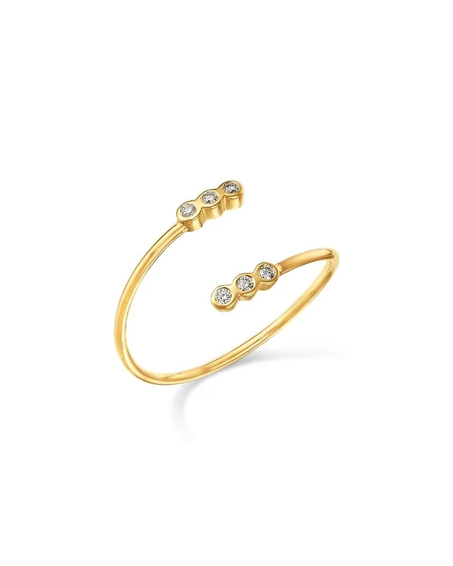 14K Yellow Gold Bezel Diamonds Bypass Ring