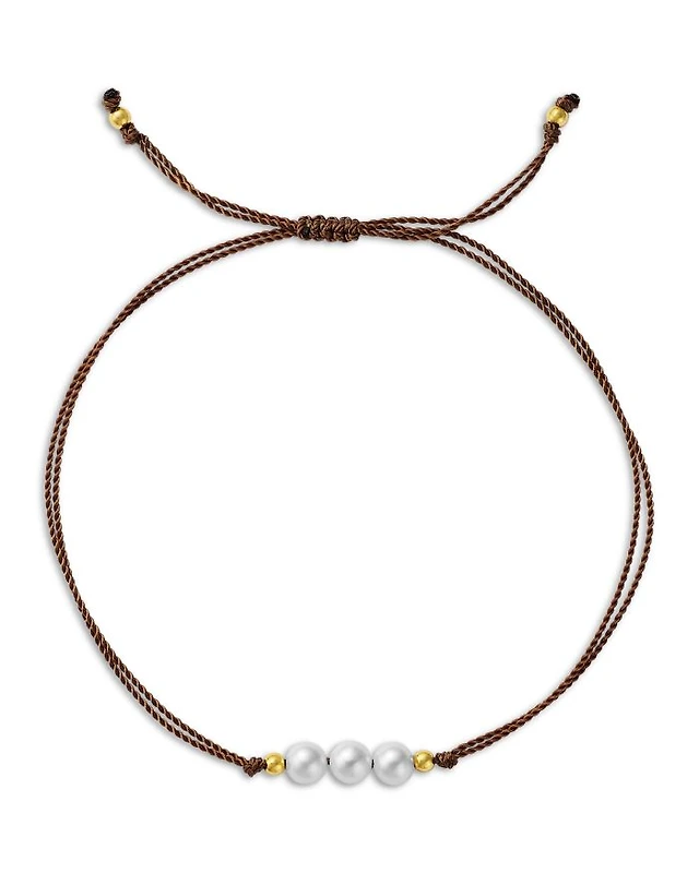 14K Yellow Gold Cultured Freshwater Pearl Trio Cord Slider Bracelet