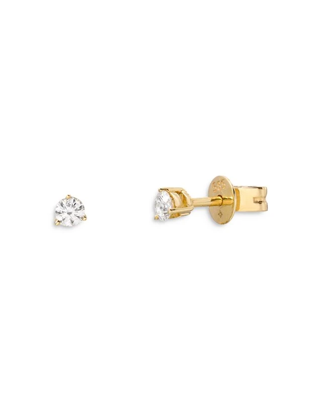 14K Yellow Gold Tiny Diamond Flower Stud Earrings