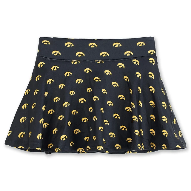 Girls Youth ZooZatz Black Iowa Hawkeyes All-Over Print Tennis Skort