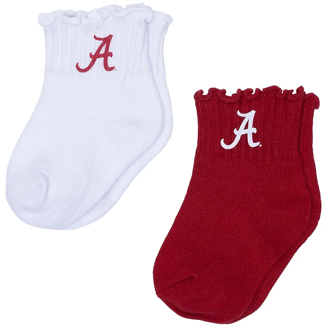 Infant ZooZatz White/Crimson Alabama Crimson Tide Two-Pack Lettuce Hem Tri-Blend Socks