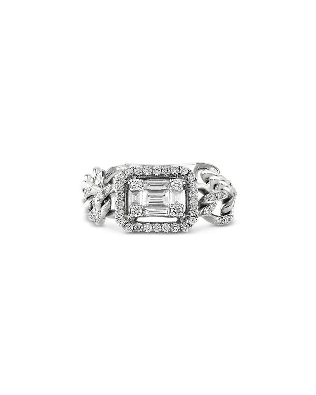18K White Gold Groumette Link Ring with Diamonds, 0.43 tcw