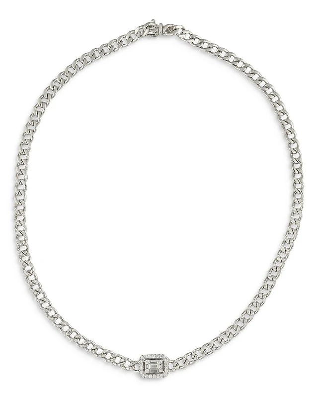 18K White Gold Mosaic Diamond Groumette Link Choker Necklace, 12.5"