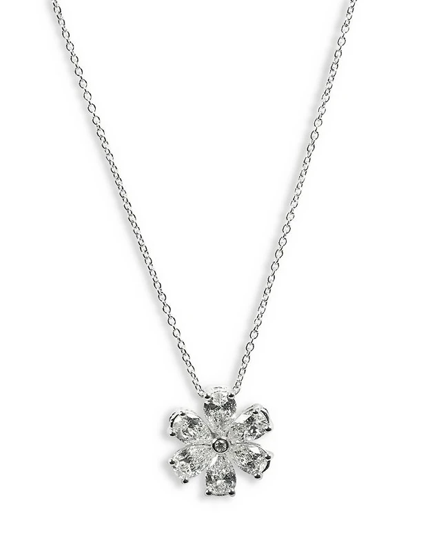 18K White Gold Luminal Diamond Flower Pendant Necklace, 16"