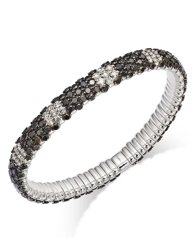 18K White Gold Stretch Collection Black & White Diamond Flower Motif Bracelet - Exclusive