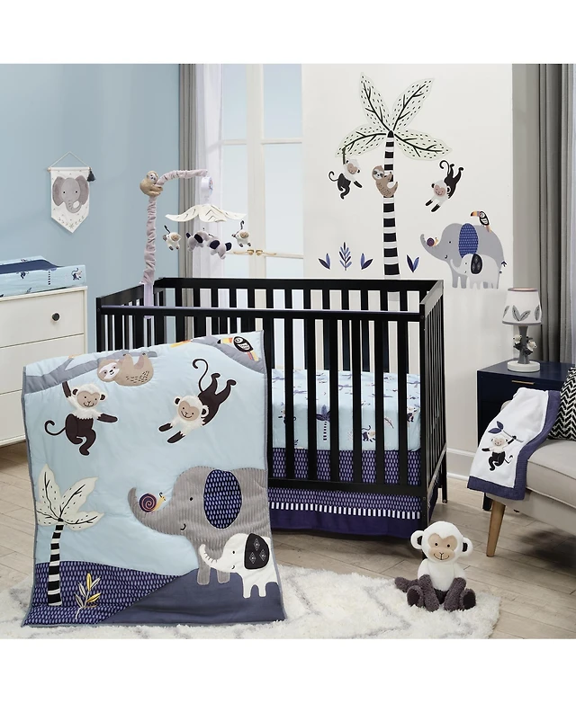 Bedtime Originals Baby Jungle Fun Gray/Blue/White Elephant, Lion and Monkey 3-Piece Nursery Crib Bedding Set