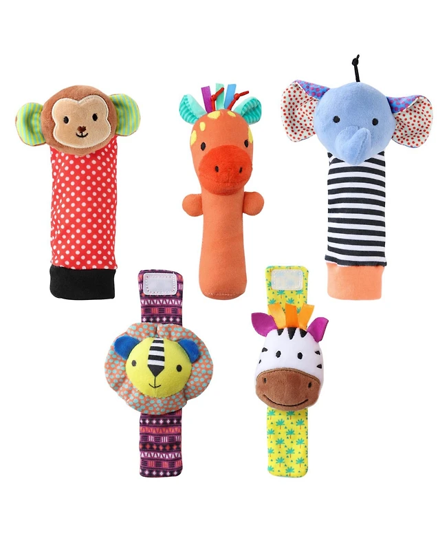 The Peanutshell Safari Baby Rattle Socks and Wrist Rattle Set, 5 Piece