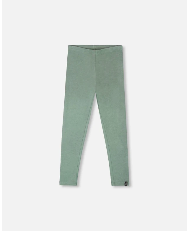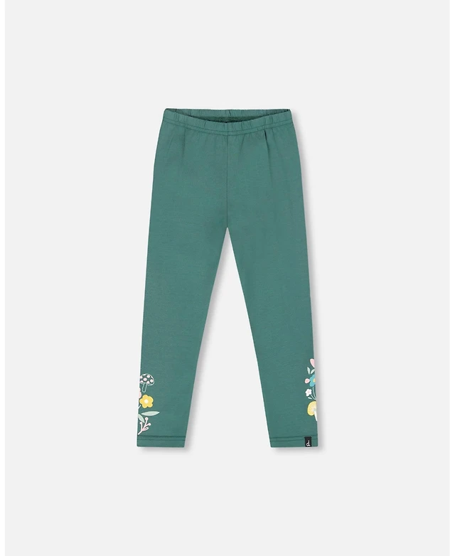 Deux par Girl Cotton Jersey Leggings Jade Green with Floral Detail - Toddler|Child