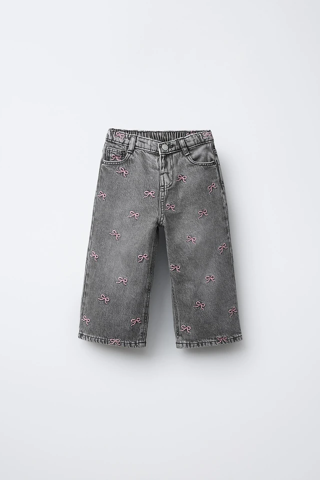 EMBROIDERED BOW CULOTTE JEANS